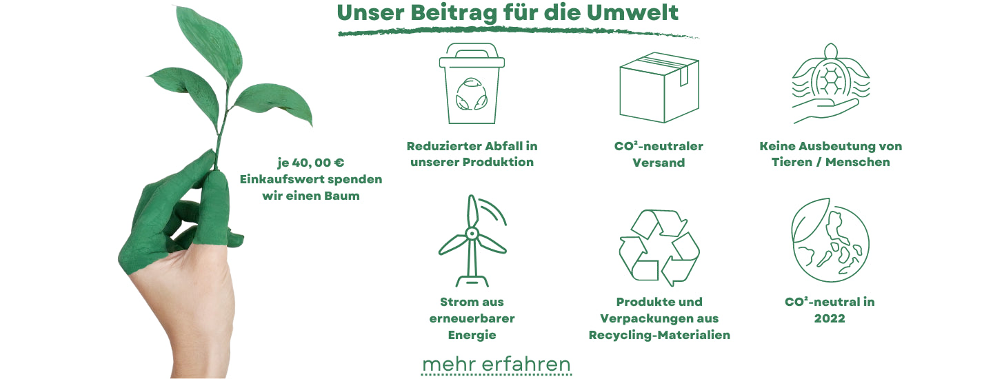 Für jeden Einkauf spenden wir einen Baum, je 40,00€ Einkaufswert an TreePlantingProjects!